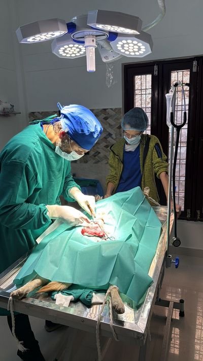 Omdat wij als stichting Dierennood een zeer prettige en bijzondere samenwerking met Ravi hebben ondervonden, heb ik persoonlijk hem gevraagd om er in hun kliniek ook studenten 6e jaars en officiële dierenartsen mogen komen om gedurende enkele weken mee te draaien. Hij was daar erg enthousiast over en iedereen die op zijn minst zelfstandig kan opereren, is daar van harte welkom.
